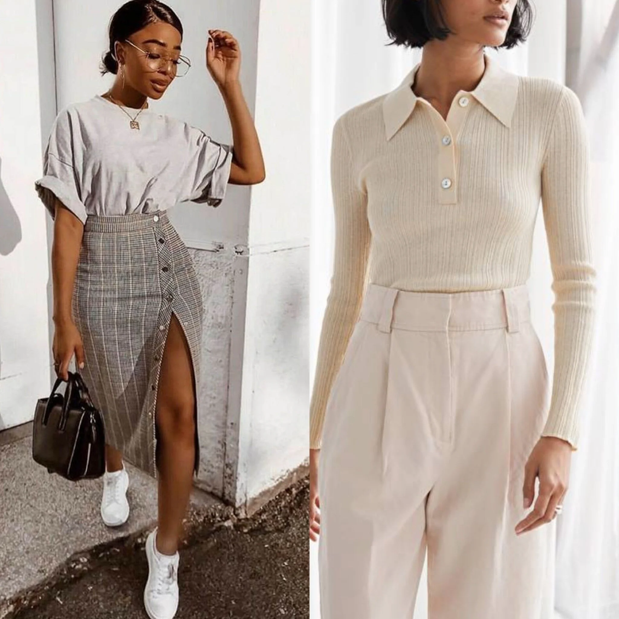 The Prep/Preppy trend is ever evolving. It’s a true classic. For your wardrobe, adding a stylish polo is always a win & incorporating texture is always fun to play with like the one photoed to the left. Also adding chic Aryle or Plaid prints to a simple look is another way to go. As you can see in the photo she added a super cute plaid midi skirt to a simple but stylish tee and added a pair of sneakers. This look could be accomplished with a plaid or argyle pant as well.